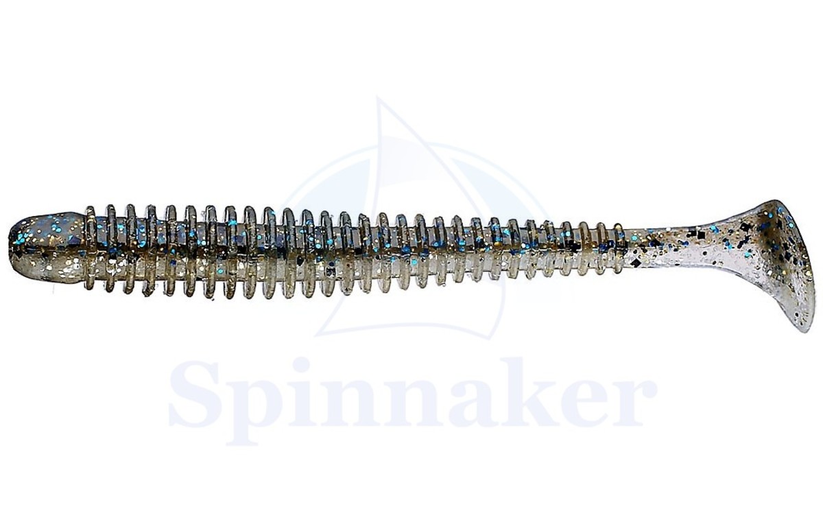 Silicone worm bait equipped with a tail able to emit considerable vibrations. The body of the bait is covered with lamellae that collect air during the launch and then release it during recovery.